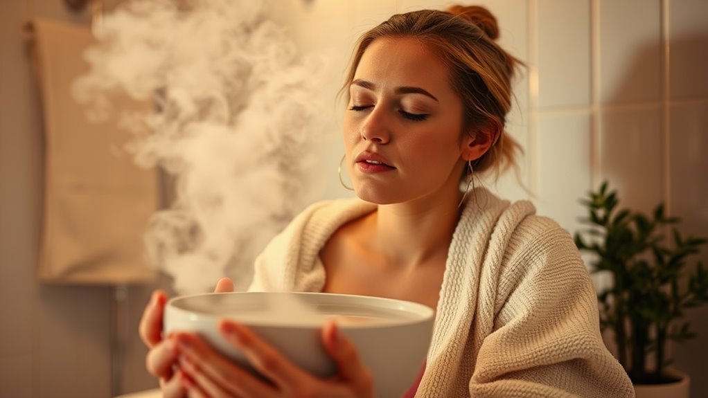 Imagine your sinuses as a congested highway, where every bump and blockage leads to frustration. When sinus pressure builds, it can feel overwhelming, but there’s a simple trick you can use at home to find relief. By using steam inhalation, you can clear that traffic and ease your discomfort. Curious about how this method works and what else you can do for better sinus health? Let’s explore effective remedies together.