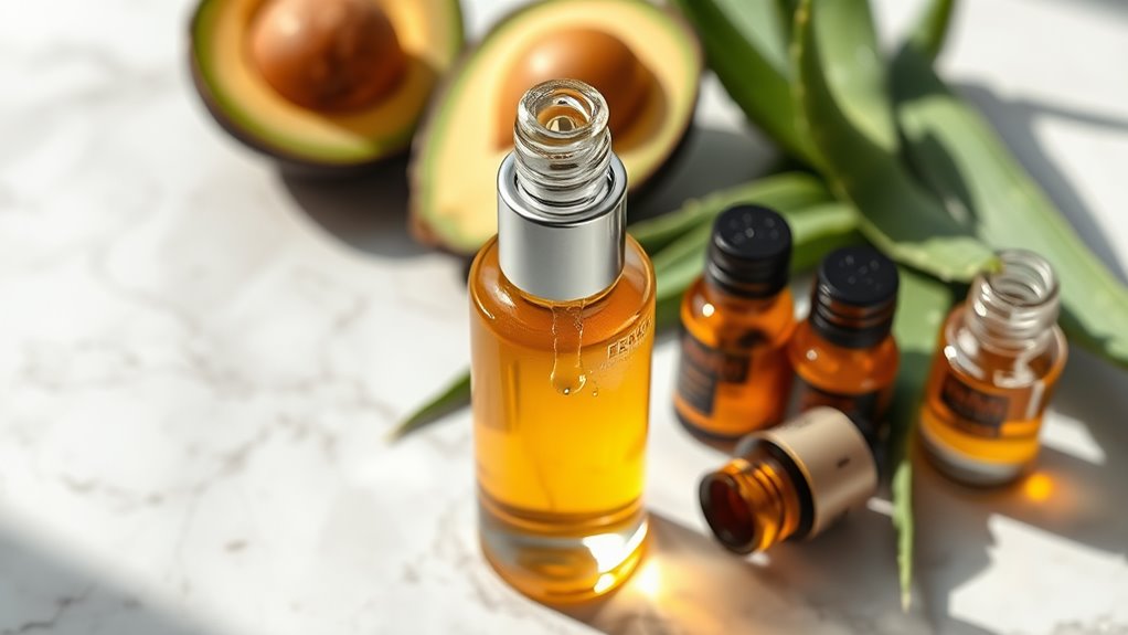 Adding aloe vera gel can soothe and moisturize, making it perfect for any skin type. If you’re looking for an extra boost, consider incorporating rosehip oil, known for its ability to improve skin texture and tone. Natural ingredients are key to creating a nurturing blend that helps you feel confident in your skin.
