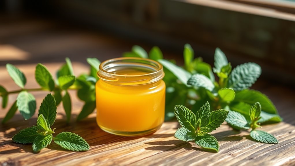 Label your container, and store it in a cool, dark place until you’re ready to use it for relief. Utilizing essential oils like eucalyptus and peppermint can enhance your rub’s effectiveness by providing natural soothing properties that may help alleviate congestion.