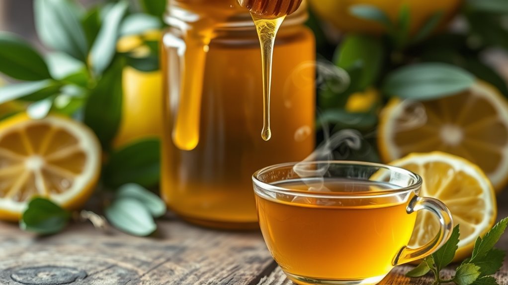 Another study highlighted honey’s antioxidant properties, which may help your body fight off infections. When combined with warm water or herbal tea, honey creates a comforting drink that not only tastes good but also supports your immune system. Furthermore, honey has been shown to outperform common over-the-counter medications in alleviating cough symptoms, making it a preferred choice for many seeking relief. You’re not alone in turning to this natural remedy; countless others have found comfort in honey’s healing properties.